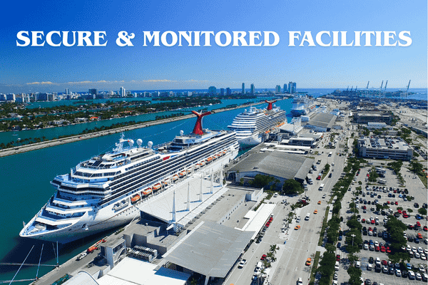 Your vehicle is protected with 24/7 surveillance, gated access, and well-lit parking lots, giving you peace of mind while you’re at sea.